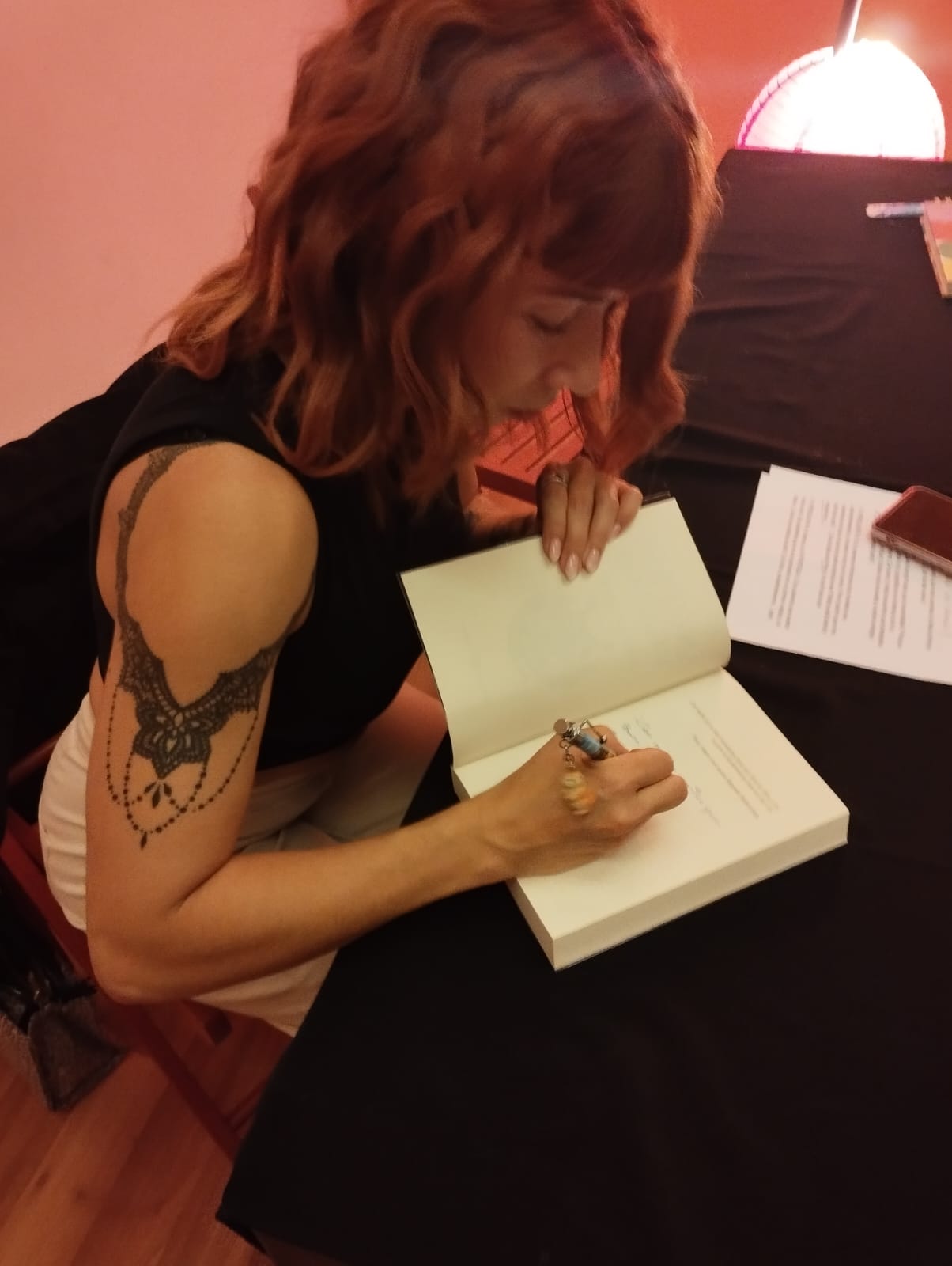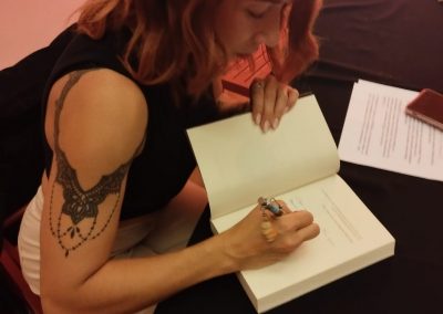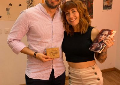 Galería ¡Mi galería favorita, lectoras y lectores de mis novelas, los Laters! Verás las dos cubiertas de Hasta el final (la de la versión autopublicada y la de editorial Mil Amores), y la de Ángeles y Caídos. Presentación Ángeles y Caídos en la librería Diógenes de Alcalá de Henares (2025) Modelito listo P 1 P 5 M 1 P 4 Mar, Eli y Elena Adrián Blas Carlos Javier Eva y Sara Elena, Mar y Eli Barri F 2 M P 2 Entrevista en el Chester del pabellón de Publishers Weekley, Feria del Libro de Madrid 2023 Presentación Hasta el final en la librería Taiga Madrid (2022) Cocktail editorial Mil Amores, Feria del Libro de Madrid 2022 Entrevista en el blog Laurell lee y escribe (feb 2022) Entrevista con Katy Molina en su Ricón de Katy (ago 2021)